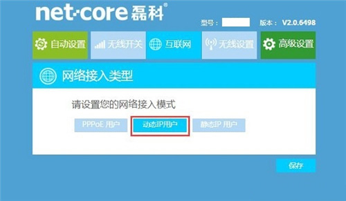 温馨提示:磊科NW719路由器中的智能配置,“网络接入类型”有时候会识别不准确,造成设置后无法上网的问题。所以,这里选择“不需要”,然后手动设置磊科NW719路由器连接Internet。