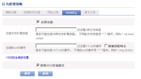 3、在完成“网址分类”配置之后进行“WEB安全配置”。如下图: