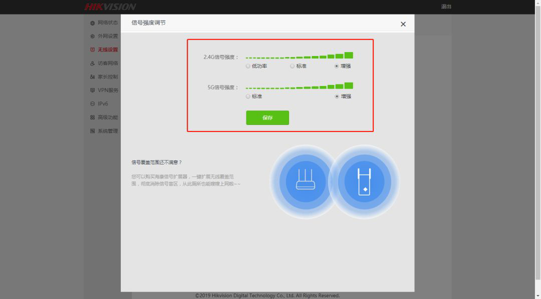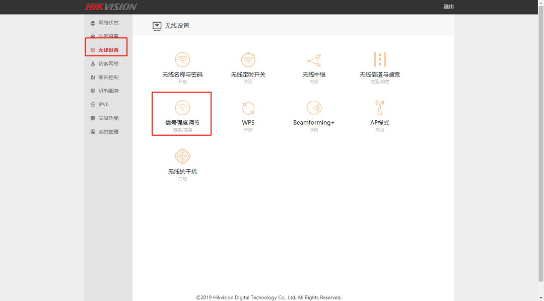 9.“无线设置”----“信号强度调节”,更改信号强度。