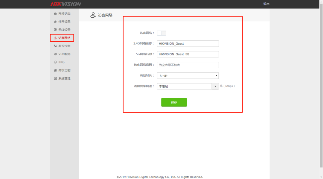访客网络设置界面