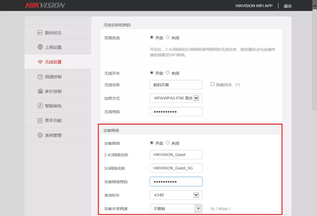 “访客网络”----“开启”时的界面
