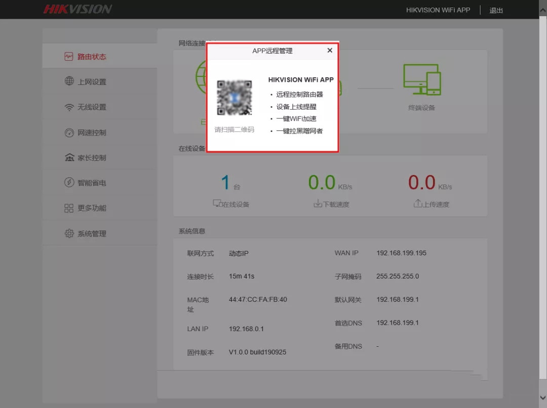 出大招了:右上角点击“HIKVISIONWIFIAPP”,可以扫描二维码下载APP,进行手机操作。
