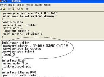第四步:进入到管理界面后通过local-user命令修改相应帐户的密码即可实现密码恢复目的,将原来不能登录帐户的密码重置。(如图4)