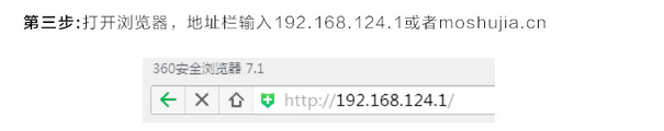 打开浏览器,地址输入192.168.124.1或者moshujia.cn