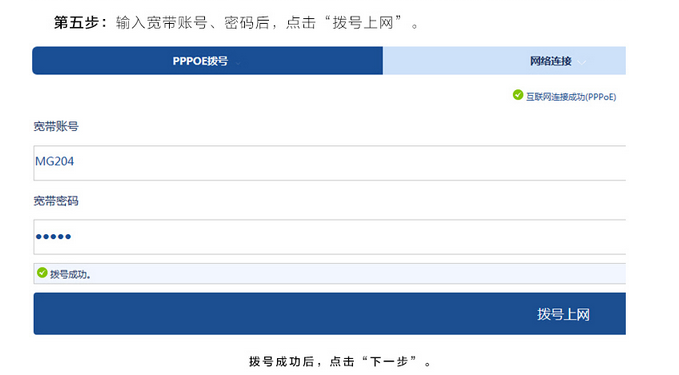 第五步:输入宽带账号、密码,点击拨号上网。