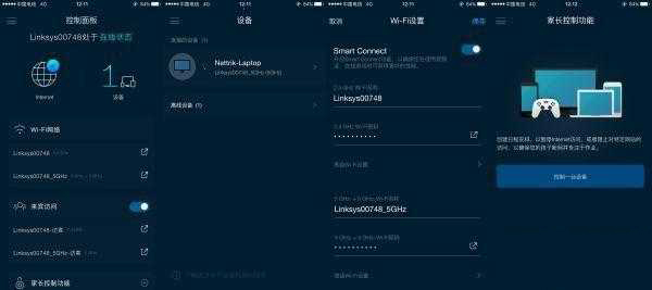 ▼可远程查看网络状态、已连接设备,WiFi网络和访客网络的SSID及密码(并可分享),并可以修改WiFiSSID及密码,设置家长控制、设备优先级、端口转发、MAC过滤等。在此建议使用Linksys路由器的朋友们注册并使用LinksysSmartWiFi账号,非常方便。