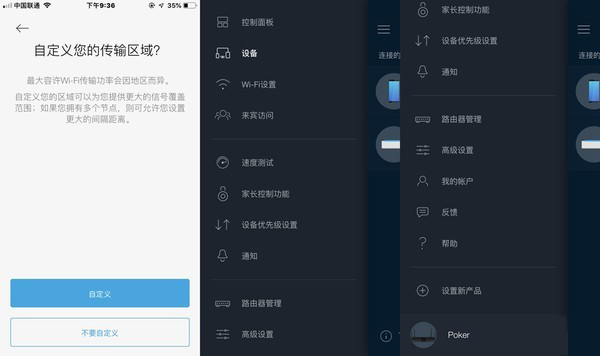 选择定义区域,之后就可以进入路由器的APP配置界面了,在这里要特别说明的是,使用网页端登陆路由器之前必须要先使用手机APP进行配置否则是无法登陆的,网页端登陆路由器的IP地址是10.244.1.1,这跟传统路由器的192.168.X.1是有区别的,这个10.244.1.1的地址不会出现跟光猫地址冲突的问题。我之前的TP路由器就是用的192.168.2.1,因为192.168.1.1被光猫占用了,一旦地址冲突就没法看网络电视了。所以路由器的这个初始地址还是避免了一些不必要的麻烦。