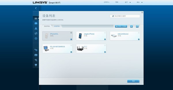 左侧是路由器的功能菜单,我们依次浏览一下这里的主要功能。在这设备列表中可以看到连接到网络中的无线和有线设备。