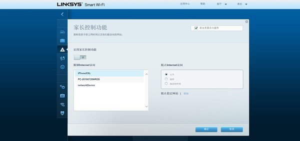 家长控制功能可以指定终端进行连接的时间限制或者彻底禁止。