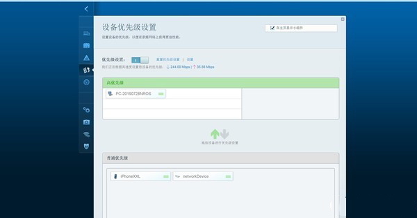 设备优先级的设置功能可以通过拖动设备名称条来完成优先级的配置,游戏设备自然要放在最前端了。