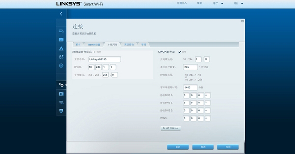 在网页地址栏输入10.244.1.1,进入路由器的登陆界面,点击右下角的继续前往LinksysSmartWi-Fi进入配置界面。