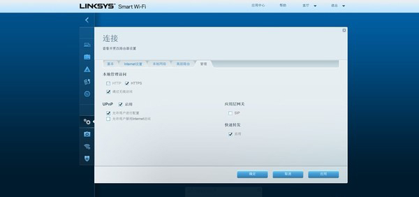 在管理功能中可以设置本地管理访问模式Upnp功能。