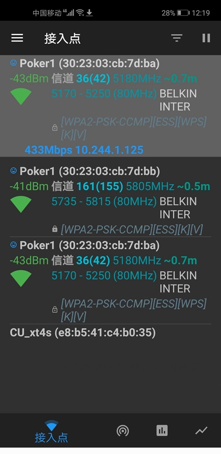 使用测试软件可以看到虽然都是名为Poker1的5G网络但是有两个独立的频段。