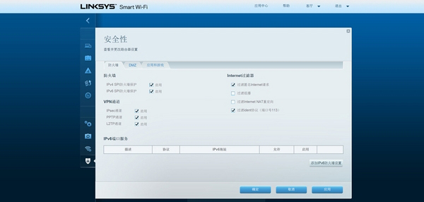 安全性中的防火墙设置,一般情况下默认配置就OK。