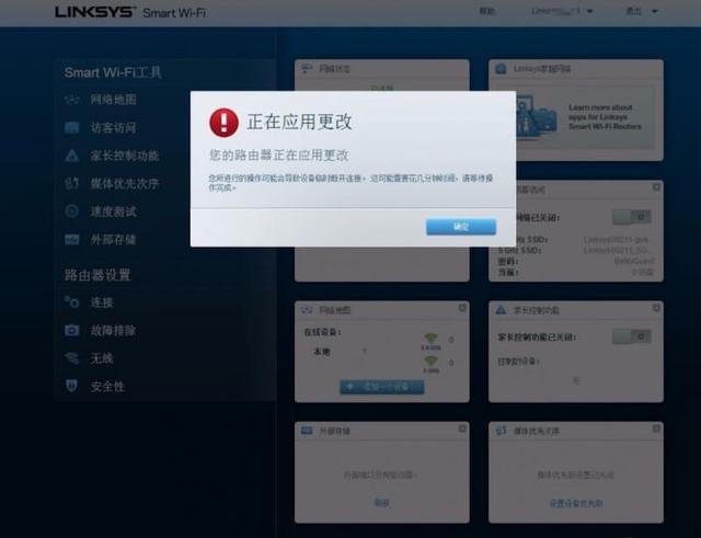 每修改一处应用后就会出现如下图显示,大家耐心等待路由器重启即可正常使用。