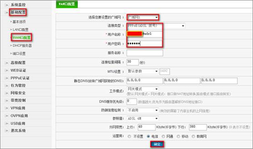 1)配置WAN1口连接宽带:PPPOE拨号。