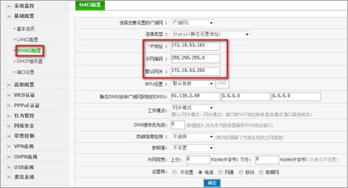 2、配静态路由,确保三层交换下其他网段正常上网。