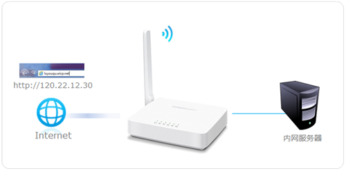 如果您的宽带并非静态IP地址,可以在动态DNS 中申请域名账号并在路由器中登录该账号,登录后使用您的域名和开放的端口号访问服务器。