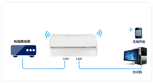 按照应用拓扑图将MW153R的任意LAN口(即1~4号接口)与前端网络接口(或局域网交换机)相连接。需要上网的台式机可以连接任何LAN口上网,无线终端搜索到设置好的无线信号即可上网。