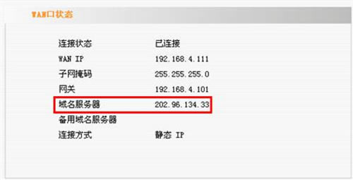 这种情况下,首先您必须知道您本地的DNS服务器地址。如果您是静态IP上网,您可以打电话向您的网络服务商咨询。如果您的上网方式中的IP和DNS的值是动态获取的(包括PPPOE拨号),那请您登录路由器的管理界面,然后依次展开“运行状态”-“WAN口状态”查看路由器WAN口所获取的DNS的值,如下图,并且把它记下来,然后再把这个DNS服务器地址手动指定到电脑上去就可以了。