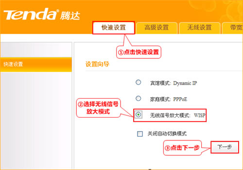 3、选择“无线信号放大模式”