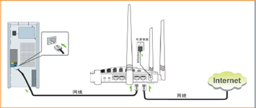 直接将入户的网线接在路由器的WAN口,再找一根短网线,一头接电脑,一头接路由器1/2/3任意接口,接线如下图: