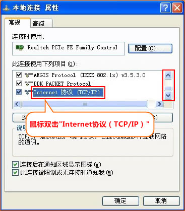 3、双击“Internet 协议(TCP/IP)”: