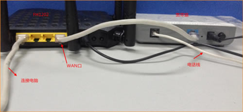 将电话线(比较细的那根线)接猫的line口(比较小的那个口),猫分出来一根网线接路由器的WAN口,再找一根短网线,一头接电脑,一头接路由器1/2/3任意接口,接线方式如下图: