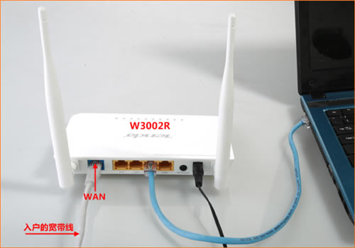 直接将入户的网线接在路由器的WAN口(蓝色),再找一根短网线,一头接电脑,一头接路由器1/2/3/4任意接口(黄