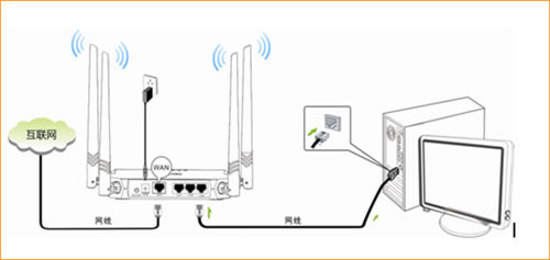 直接将入户的网线接在路由器的WAN口,再找一根短网线,一头接电脑,一头接路由器LAN1/LAN2/LAN3任意接口,接线方式如下图:
