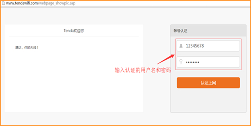 在红色框内输入账号和密码后,点击“认证上网”按钮即可上网。