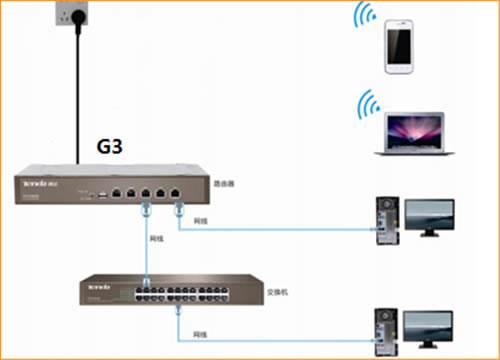 从外网接一条网线进来到路由器WAN口上,再从路由器上面LAN口分出一条网线到电脑上,完成后在浏览器输入登录IP地址进入管理设置界面。