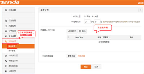 进入界面后选择“WEB认证”,通过“基本设置”可以设置web认证。