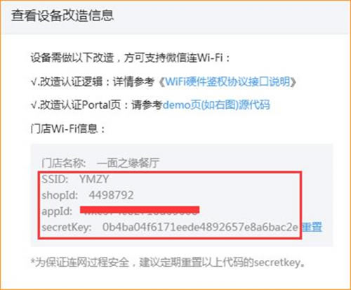 SSID、shopID、appID、secretKey 均来源于微信公众平台: