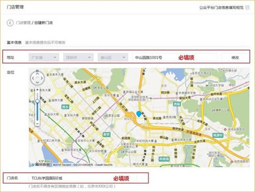 A.填写店铺正确的地址信息和店铺名称,如下图所示