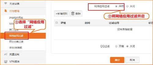 1. 选择“网络应用过滤”并开启“网络应用过滤”;