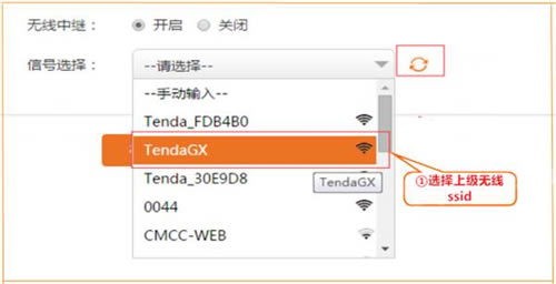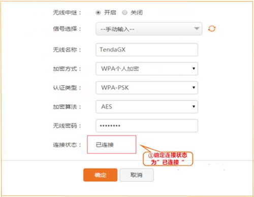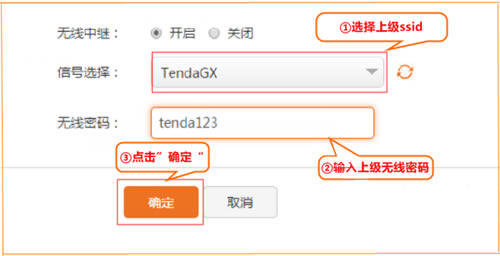 1、开启无线功能后刷新信号后选择要中继的无线信号后输入无线密码,“确定”保存。