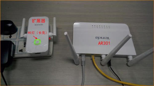 2.等待约1分钟后,当扩展器的RE灯常亮时,表示网络扩展成功。