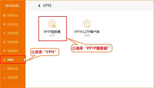 第二步:点击“VPN” ,选择“PPTP服务器”:
