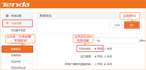 在“无线设置”-“射频优化”设置页面,开启“5G优先”功能