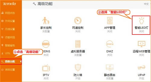 2、点击“高级功能” ,选择“智能LED灯”。