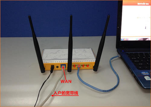 1、直接将入户的网线接在路由器的WAN口(蓝色),再找一根短网线,一头接电脑,一头接路由器1/2/3/4任意接口(黄色),接线方式如下图: