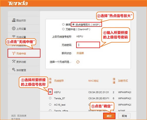 2、选择“热点信号放大”模式,设置后本机无线信号名称不改变;