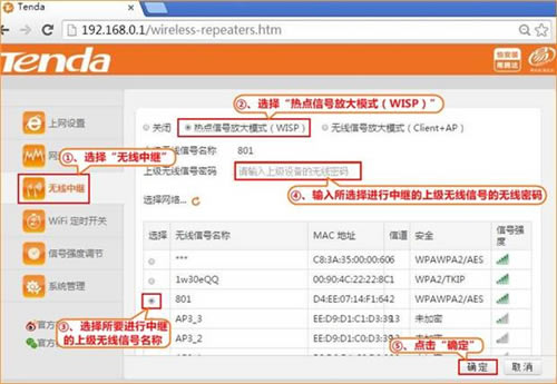 2、在浏览器中输入:192.168.0.1 按回车键,在跳转的页面中点击“无线中继”: