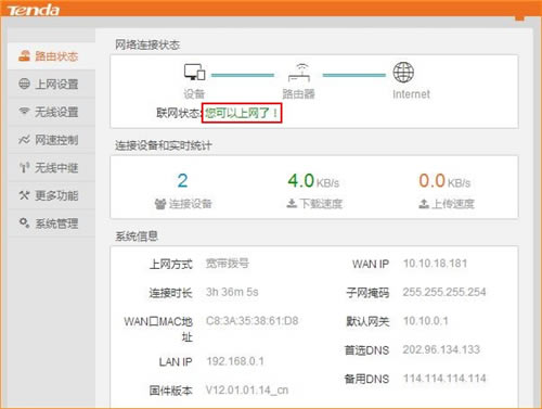 4、如果联网状态显示“您可以上网了!”,就可以浏览网页,上网冲浪了。