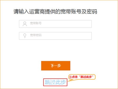 ②在页面中点击“跳过此步”(如果腾达AC15无线路由器之前使用过,那么此时会直接提示用户输入 登录密码,即步骤5所示)。