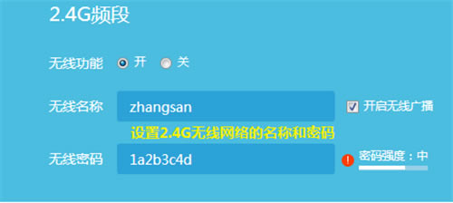 在基本设置中分别设置2.4G和5G网络的“无线名称和无线密码”,设置完成后点击“保存”。如下图:
