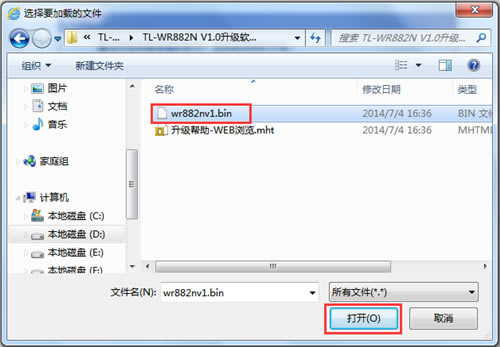 此处需要选择已经解压后的升级软件,导入路由器后即可升级。在页面处找到“浏览”或“选择”按钮,如下图: