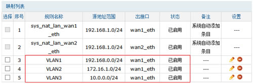 按照同样的方法,添加另外两个网段的规则,设置完成后,总规则如下: