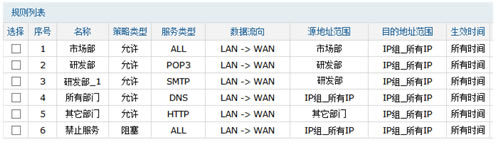 至此,访问策略规则设置完成,局域网中所有的电脑将拥有所属的部门对应的上网权限。